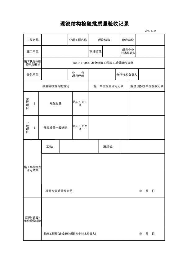 YB 4147-2006 冶金建筑工程施工质量验收表