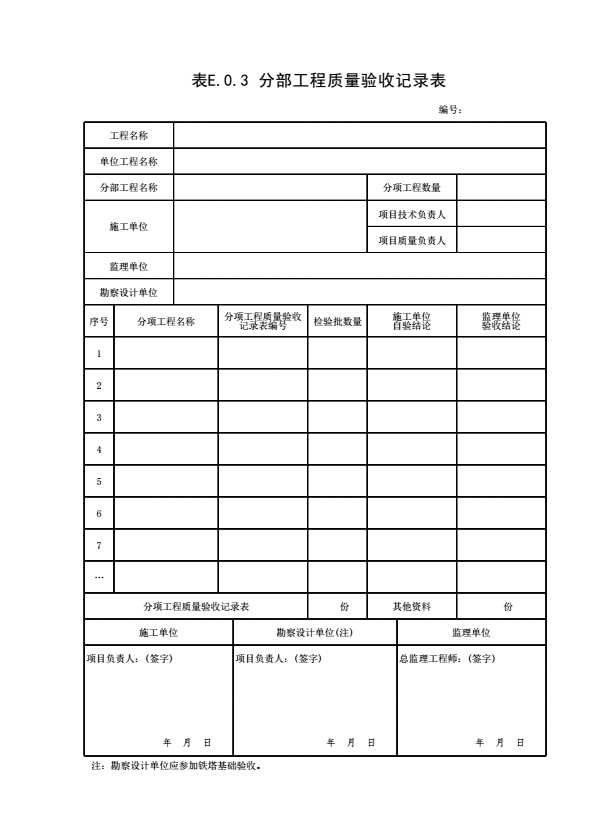 表格名称:表E.0.3 分部工程质量验收记录表