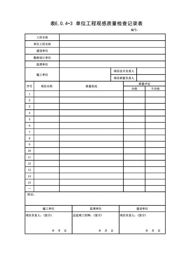 表格名称:表E.0.4-3 单位工程观感质量验收记录表