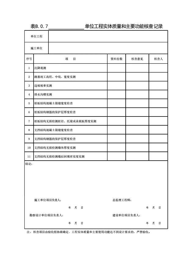 表B.0.7 ______单位工程实体质量和主要功能核查记录