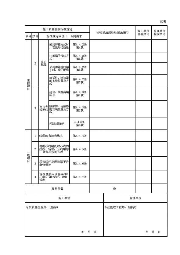 表格名称:G08050103 布线及配线检验批质量验收记录表