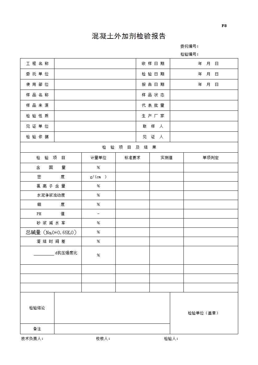 F类 原材料、半成品、构配件、设备进场检验及复检用表