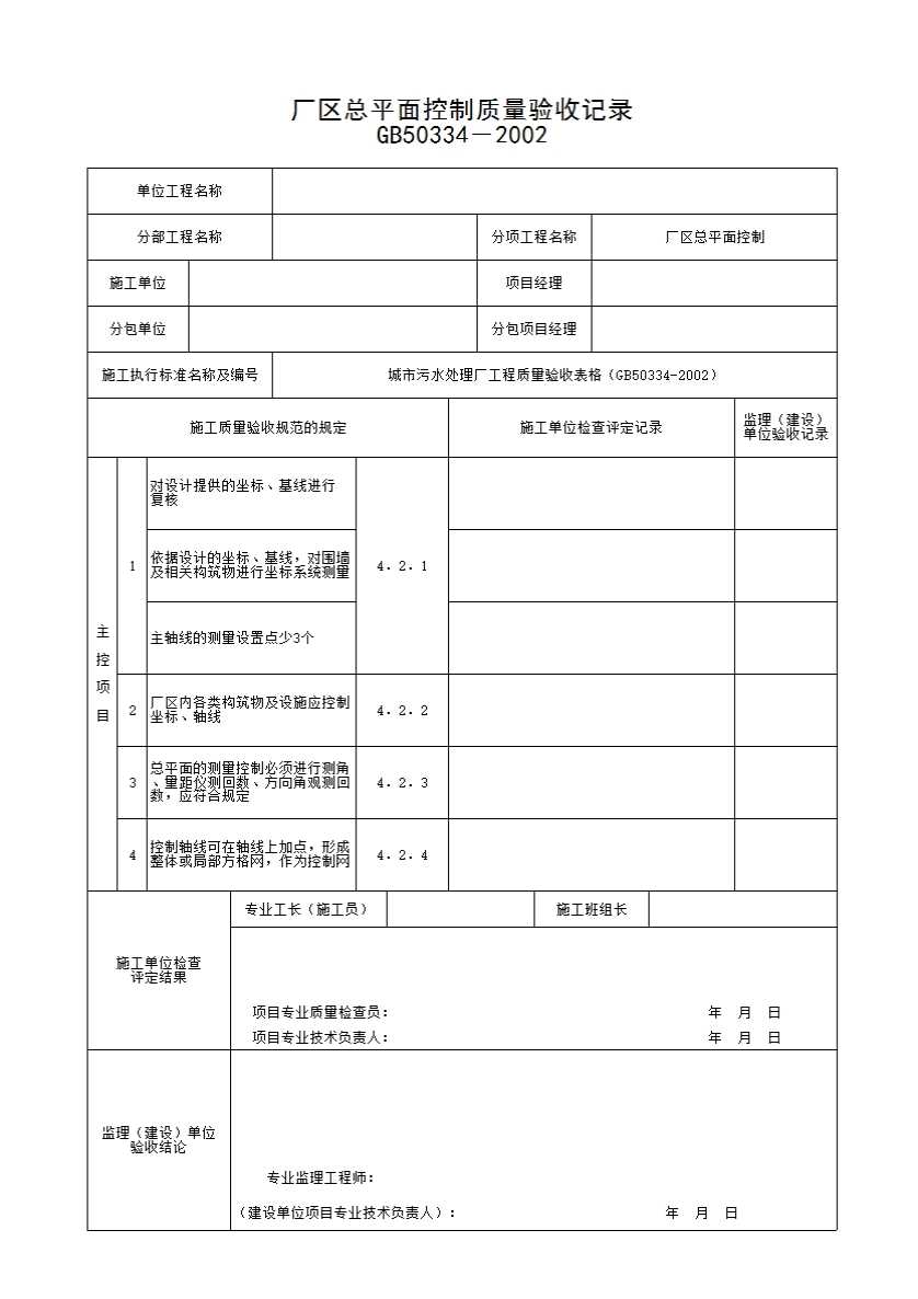 城市污水处理厂工程质量验收表格(GB 50334-2002