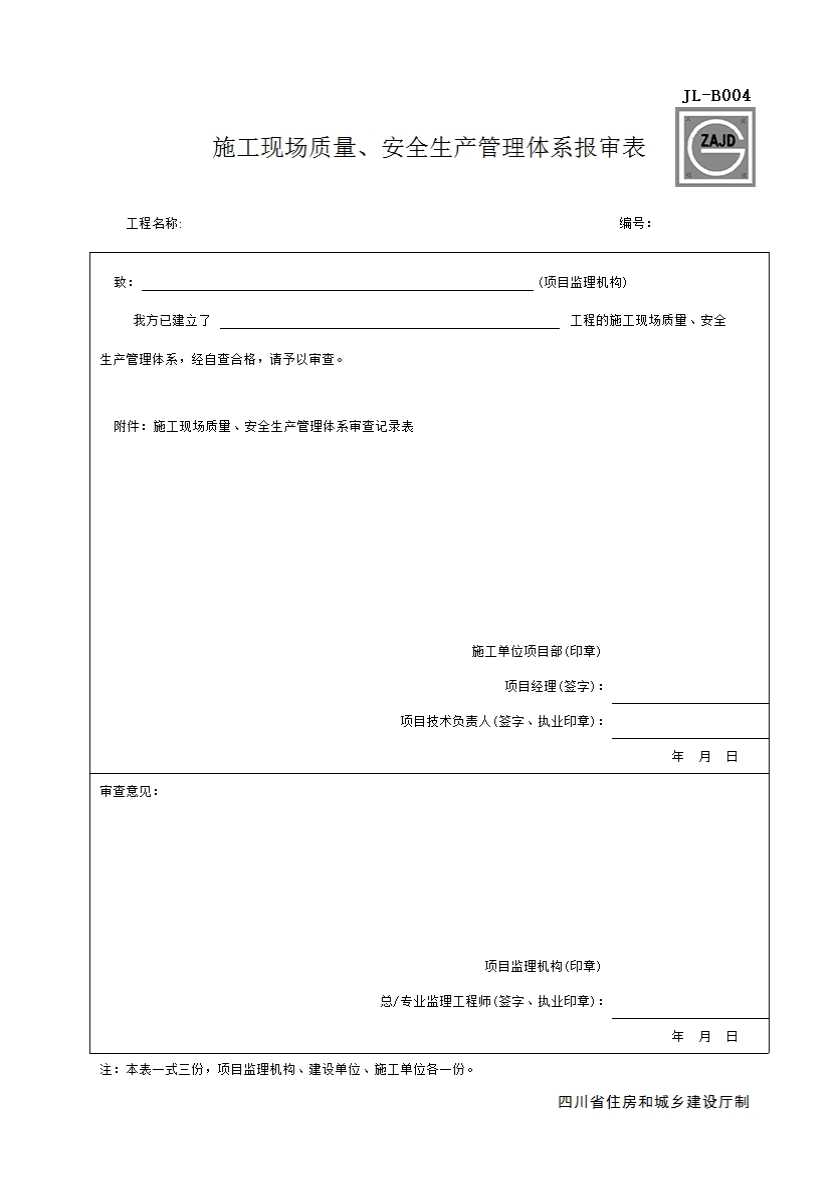 JL-B004 施工现场质量、安全生产管理体系报审表