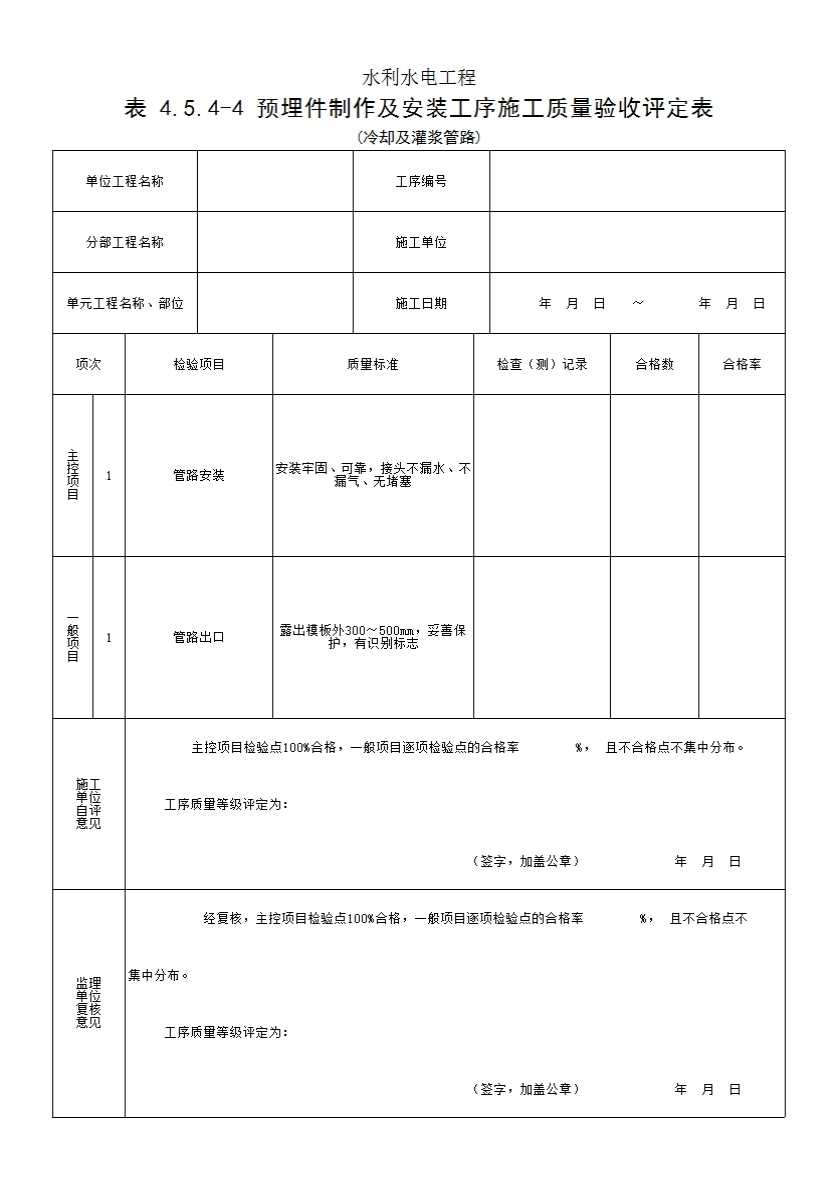表 4.5.4-4 预埋件制作及安装工序施工质量验收评定表