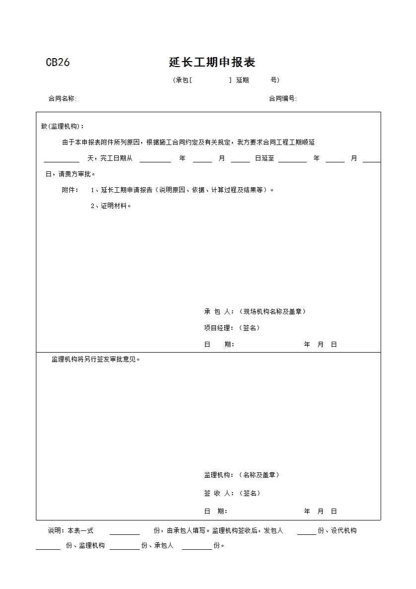 CB26 延长工期申报表