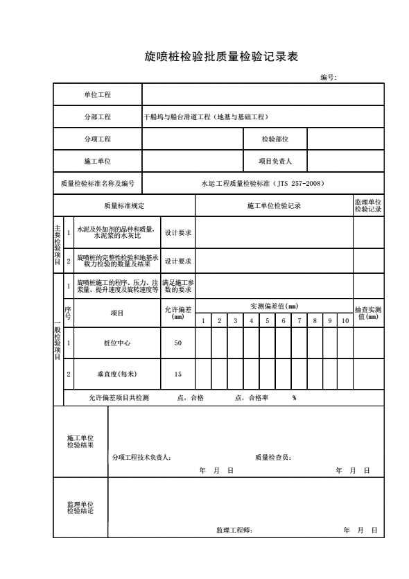 表格名称:旋喷桩检验批质量检验记录表