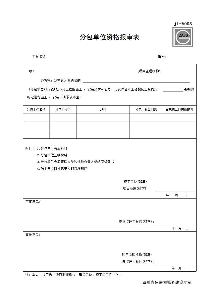 监理单位及相关单位用表(DBJ51-T060-2016)