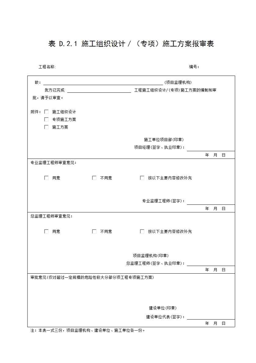 表格名称:表 D.2.1 施工组织设计/(专项)施工方案报审表