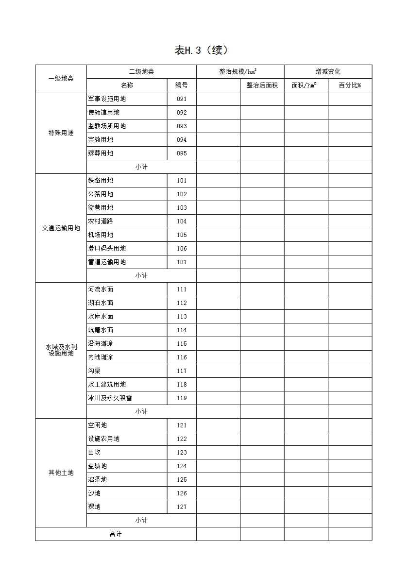 d)土地整治前后土地利用结构变化情况表,见表 H.3