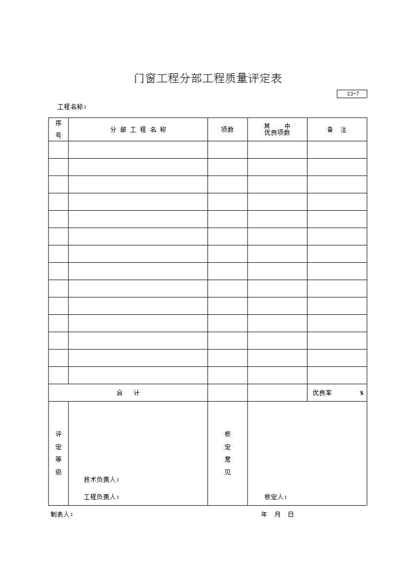 表格名称:C3-7 门窗工程分部工程质量评定表