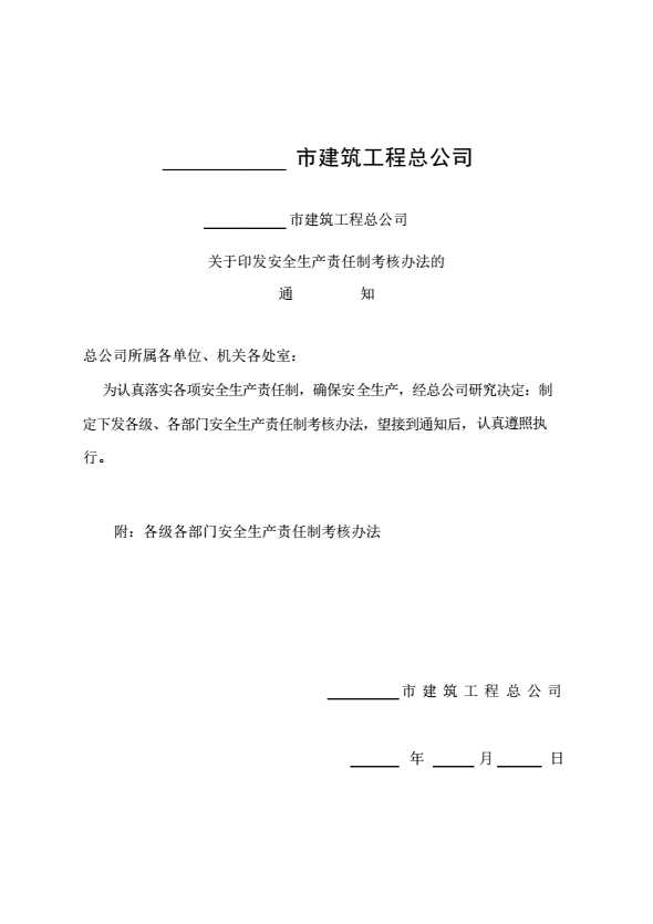 ----市建筑工程总公司关于印发安全生产责任制考核办法的通知