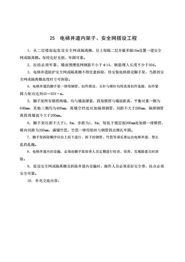 表格名称:25 电梯井道内架子、安全网搭设工程