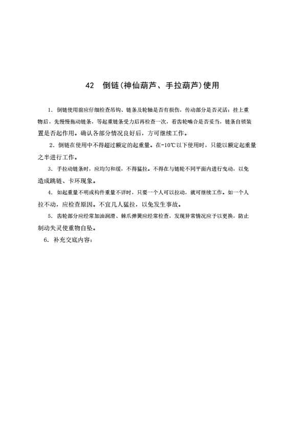 表格名称:42 倒链(神仙葫芦、手拉葫芦)使用