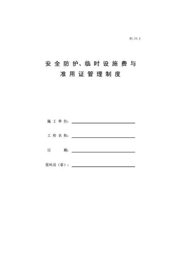 表格名称:安全防护、临时设施费与准用证管理制度
