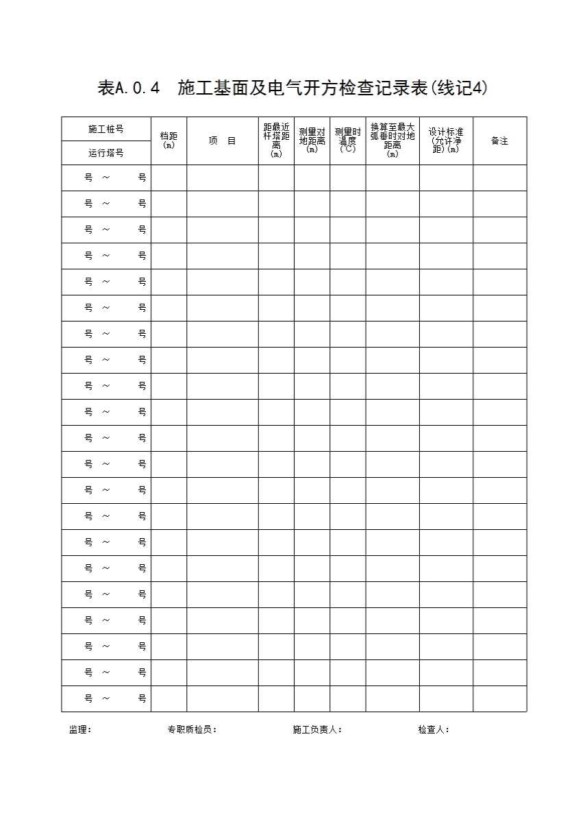 表格名称:表A.0.4 施工基面及电气开方检查记录表(线记4)