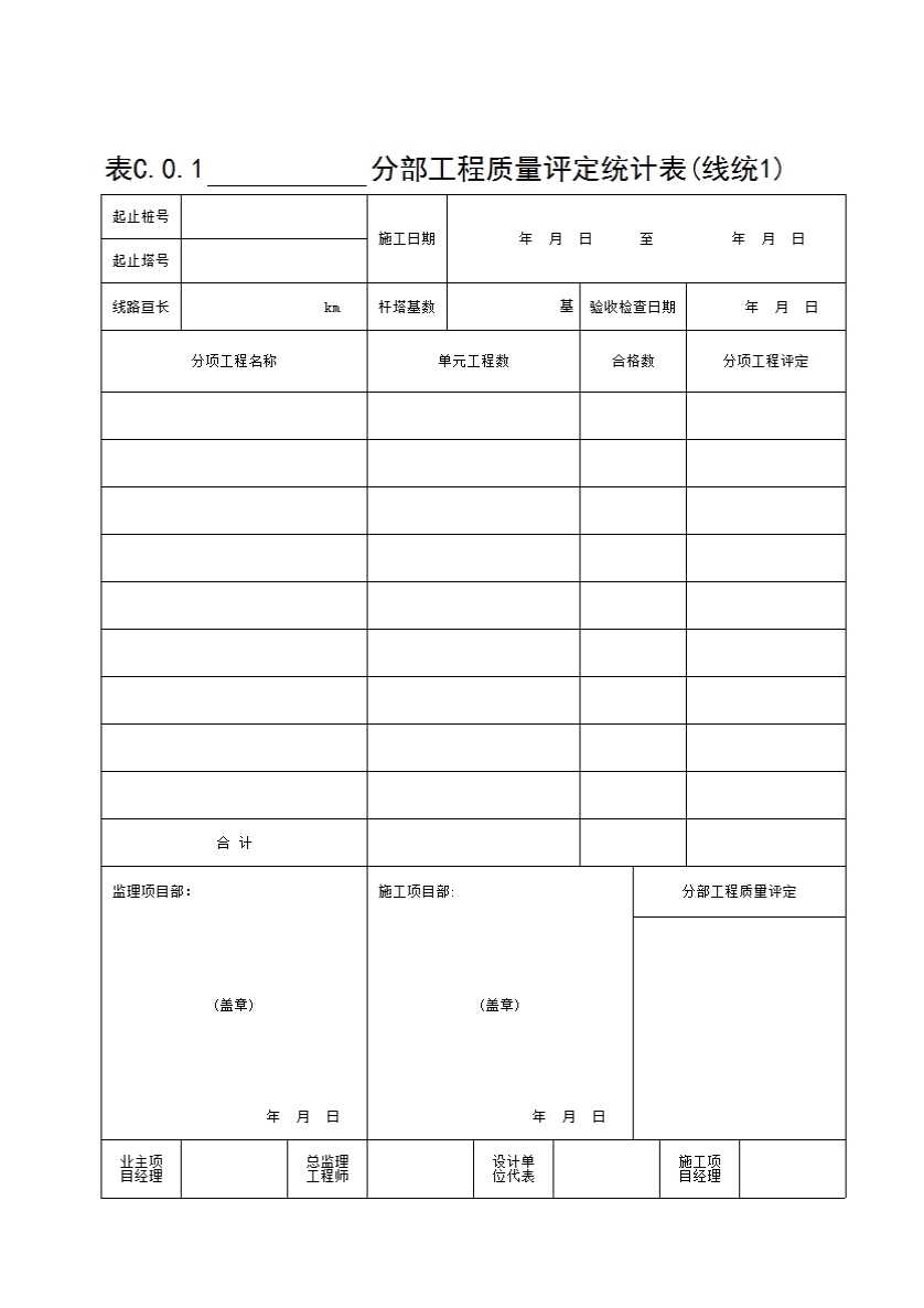 表格名称:表C.0.1 分部工程质量评定统计表(线统一)