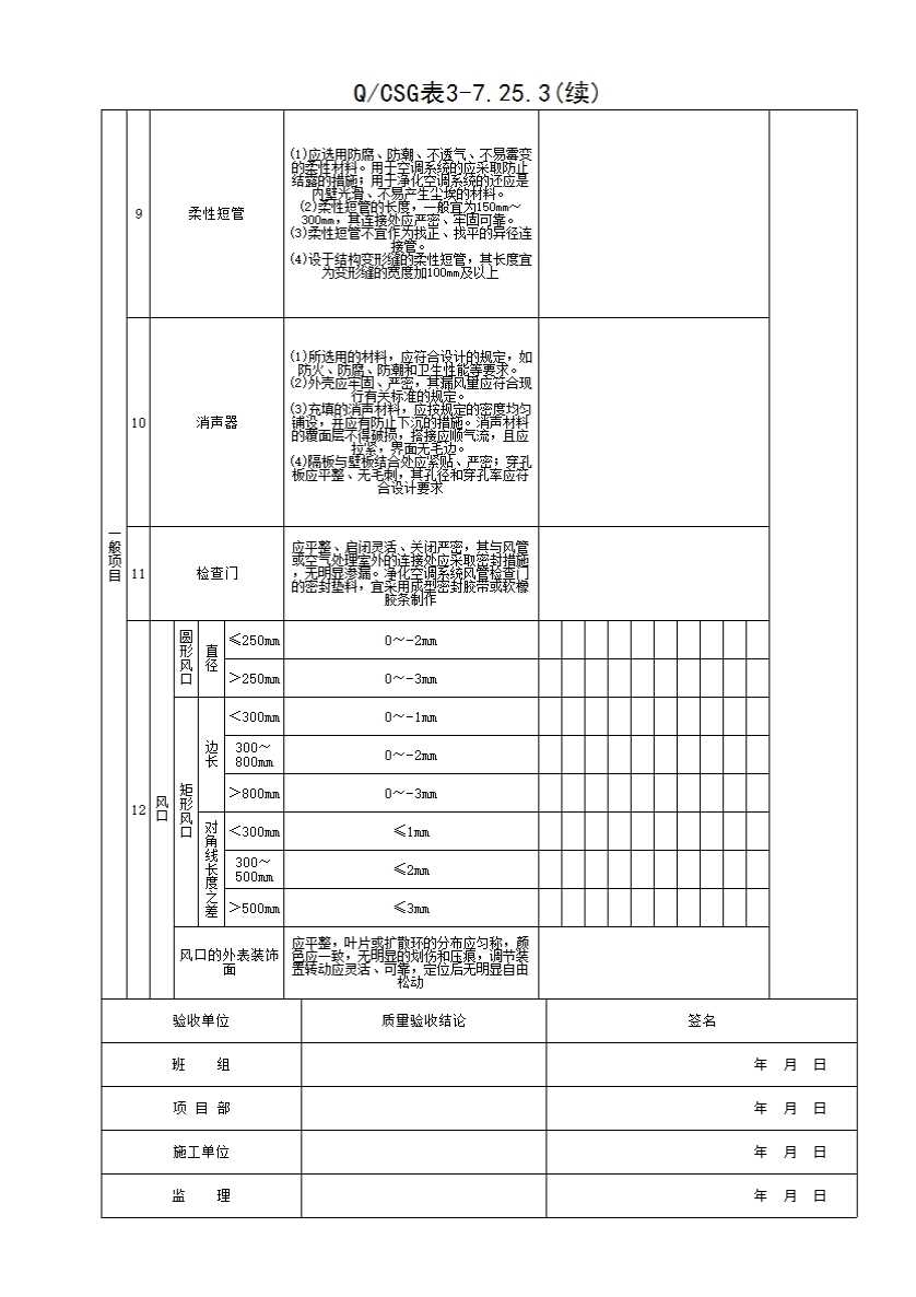 QCSG 表 3-5.25.3 风管部件与消声器制作检验批质量验收记录表