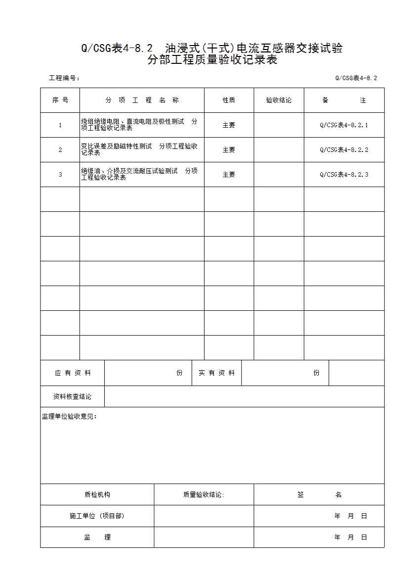 QCSG 表 4-8.2 油浸式(干式)电流互感器交接试验 分部工程质量验收记录表