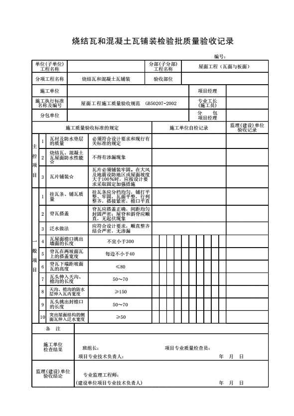 烧结瓦和混凝土瓦铺装检验批质量验收记录