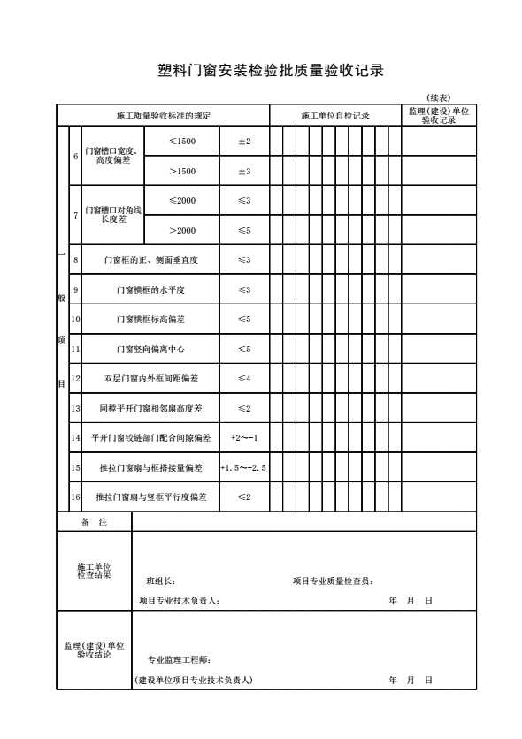 塑料门窗安装检验批质量验收记录