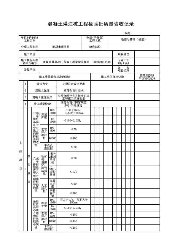 表格名称:混凝土灌注桩工程检验批质量验收记录