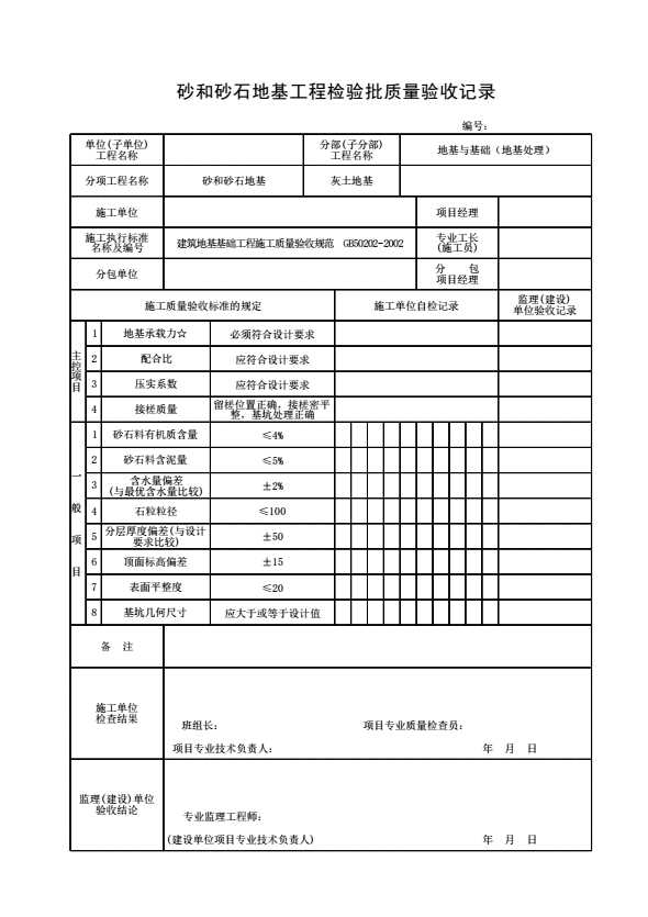 表格名称:砂和砂石地基工程检验批质量验收记录