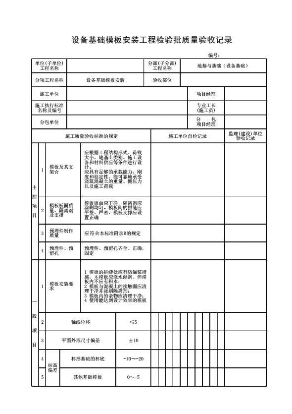 表格名称:设备基础模板安装工程检验批质量验收记录