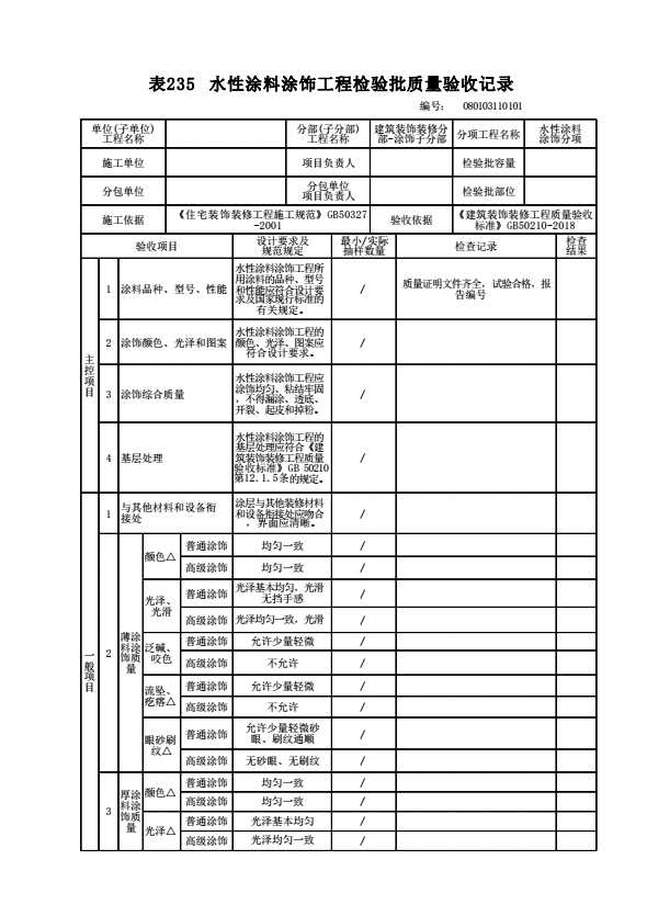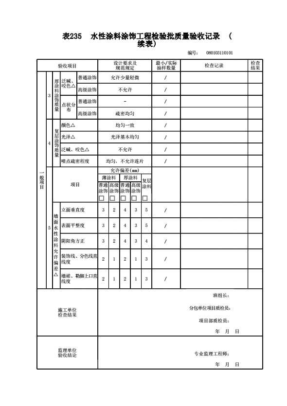 表格名称:080103110101 水性涂料涂饰工程检验批质量验收记录