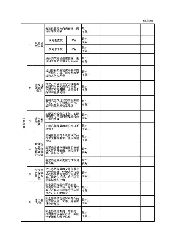 表格名称:150206020601 吸风罩及其他空气处理设备安装检验批质量验收记录