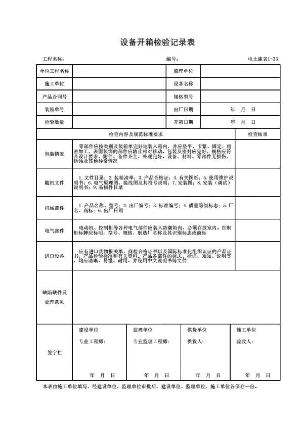 电力建设土建工程施工、试验及验收标准表式 第1部分 施工