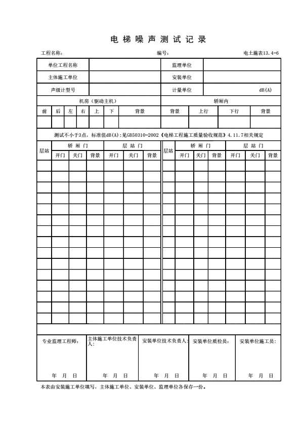 表格名称:电土施表13.4-6 电梯噪声测试记录