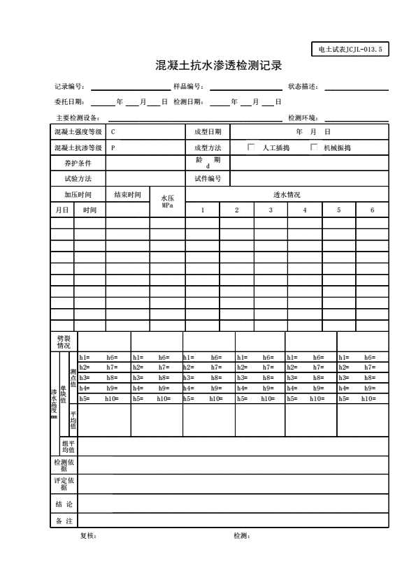 电土试表JCJL-013.5 混凝土抗水渗透检测记录