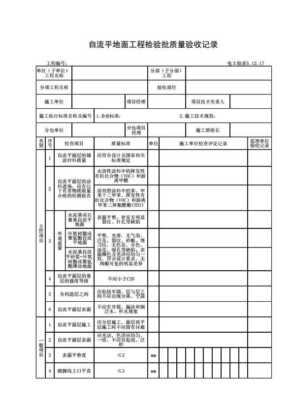 表格名称:电土验表5.12.17 自流平地面工程检验批质量验收记录