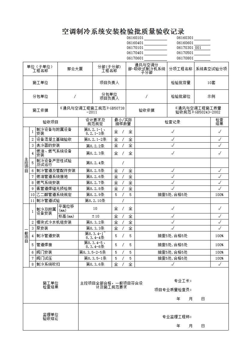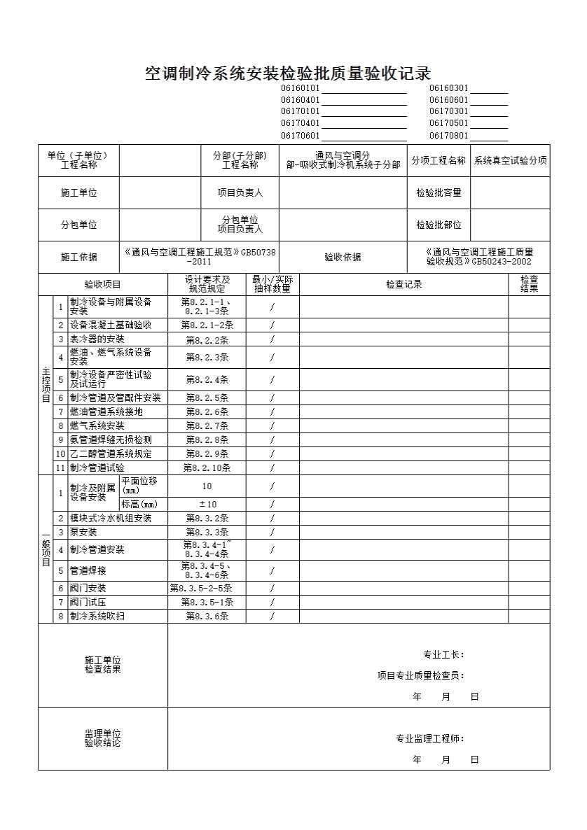 1 制冷设备、制冷附属设备的型号、规格和技术参数必须符合设计要求,并具有产品合格证书、产品性能检验报告;