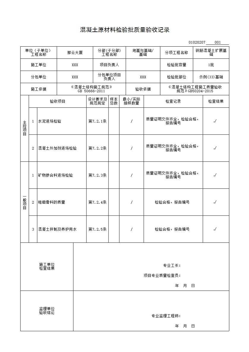 7.2.3 混凝土用矿物掺合料进场时,应对其品种、技术指标、出厂日期等进行检查,并应对矿物掺合料的相关技术指标进行检验,检验结果应符合国家现行有关标准的规定。