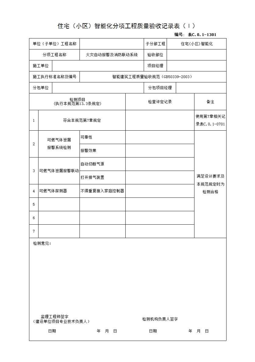 C.0.1-1301 住宅(小区)智能化分项工程质量验收记录表(Ⅰ)