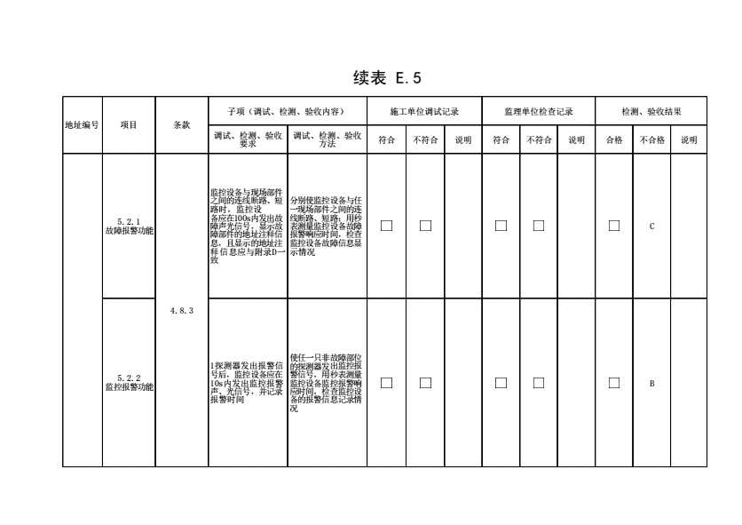 表格名称:表E.5 电气火灾监控系统调试、检测、验收记录(续表8)