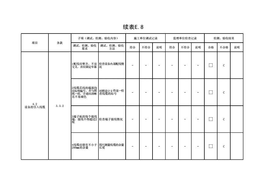 表格名称:表E.8 消防控制室图形显示装置和传输设备调试、检测、验收记录(续表2)