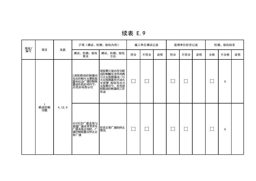 表格名称:表E.9 火灾警报和消防应急广播系统调试、检测、验收记录(续表16)