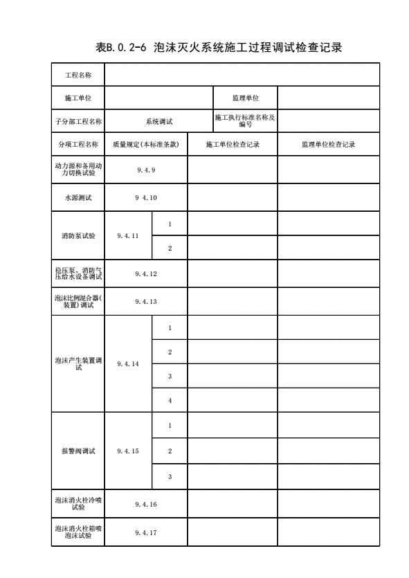 表格名称:表B.0.2-6 泡沫灭火系统施工过程调试检查记录