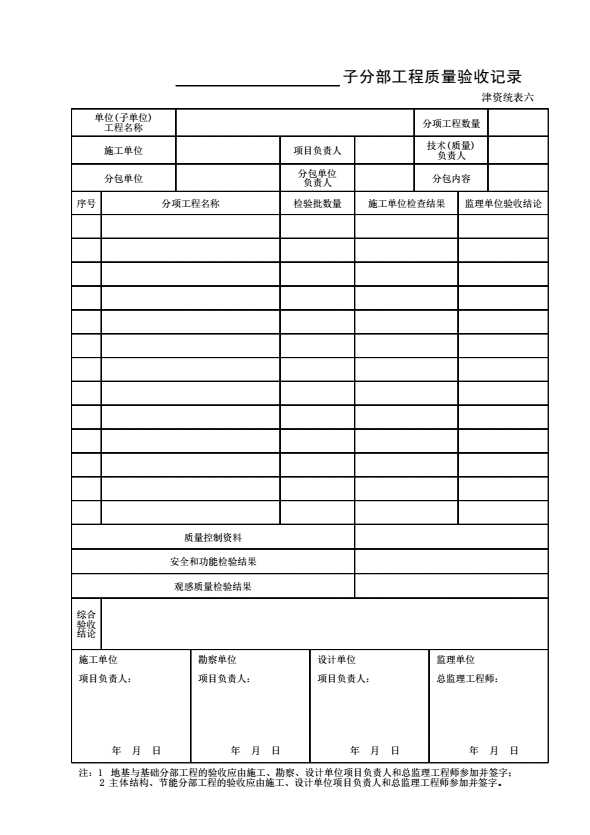 常用检验批质量验收记录表