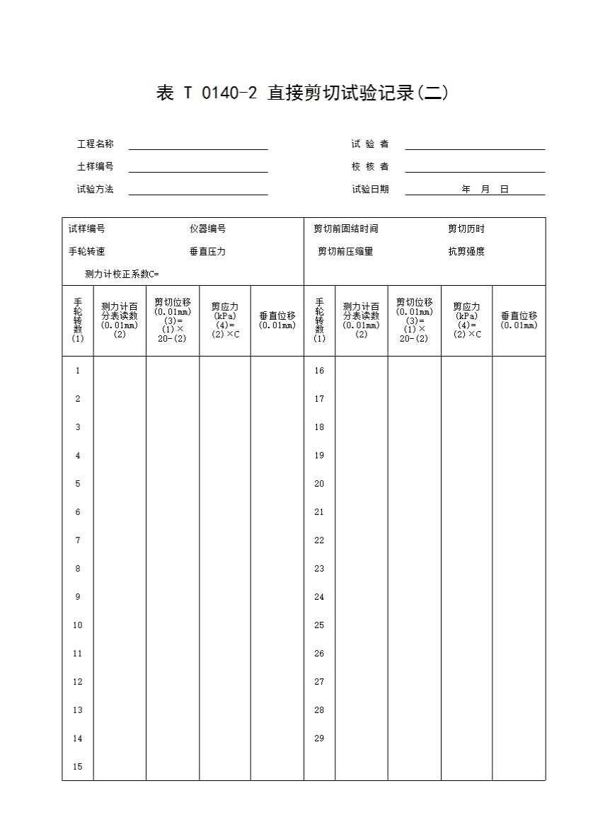 表格名称:表T0140-2 直接剪切试验记录(二)