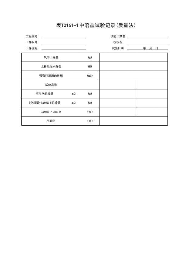 表格名称:表T0161-1 中溶盐试验记录(质量法)