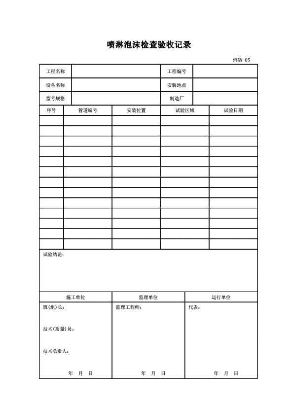表格名称:消防-05 喷淋泡沫检查验收记录