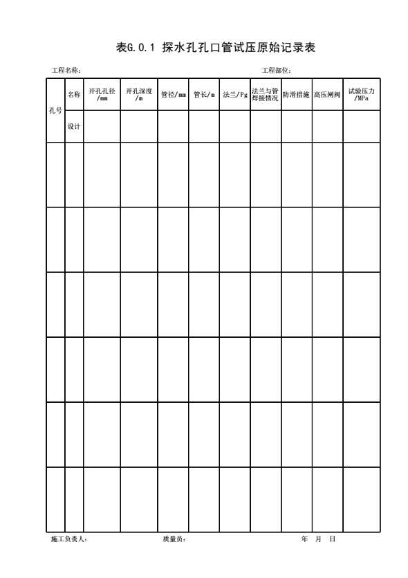 表格名称:表G.0.1 探水孔孔口管试压原始记录表