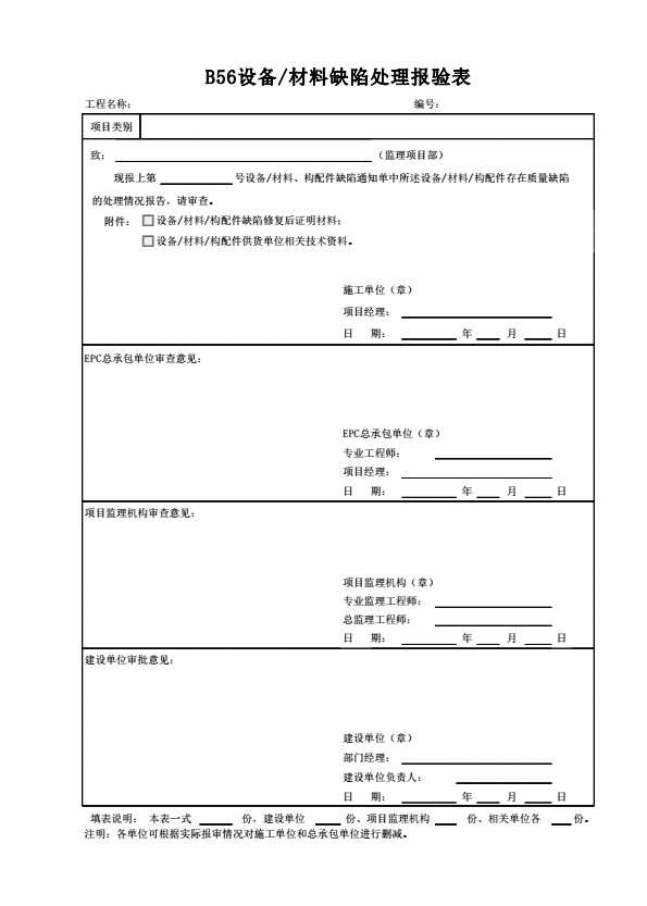 B56设备/材料缺陷处理报验表