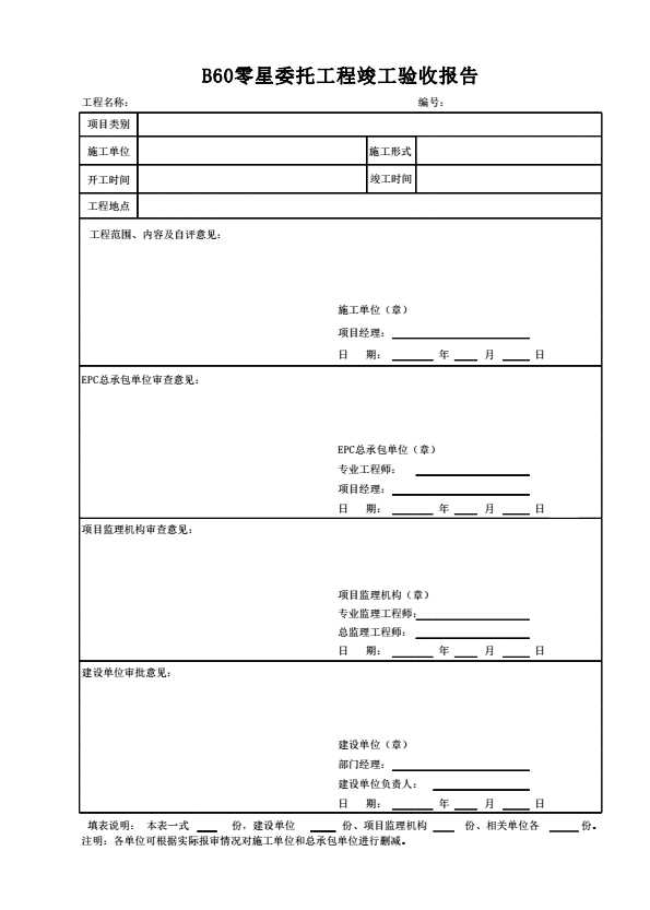 表格名称:B60零星委托工程竣工验收报告