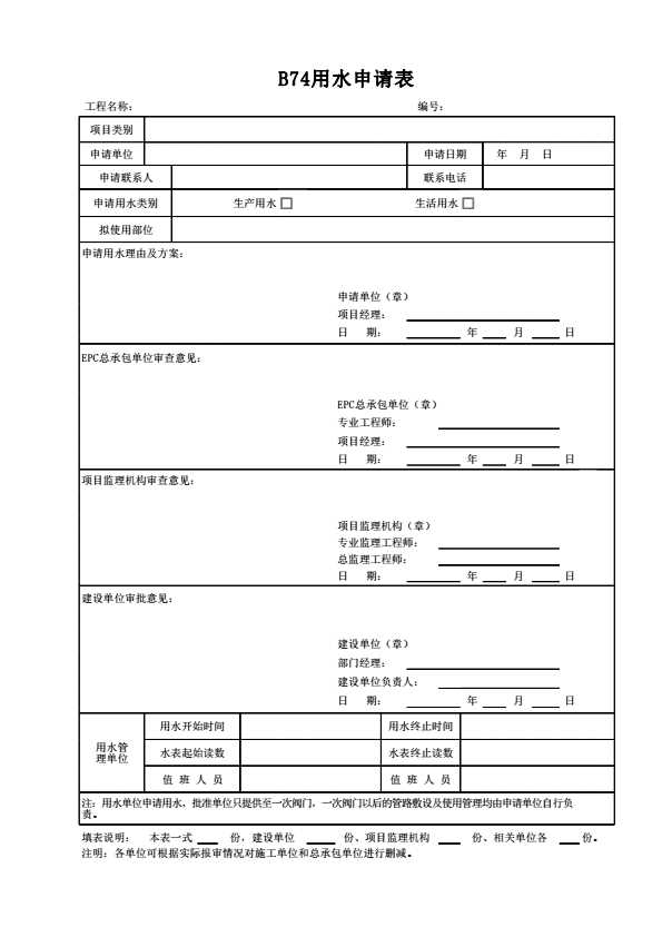 B74用水申请表