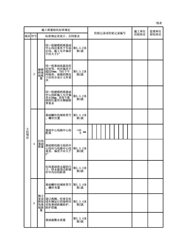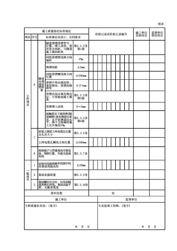 表格名称:G10020101 基础及预埋、预留件检验批质量验收记录表